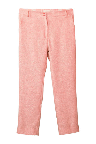 Celeni's modestly tight pants are a must have for every season. The orange, pink shade and the shortened tailoring complement each other well, they don’t enhance your figure, but elongate it. Belt holders and pockets make this georgette blended cotton pants even more practical, but most importantly, it comes with a blazer too, which can complete a really smart casual, trouser suit set.